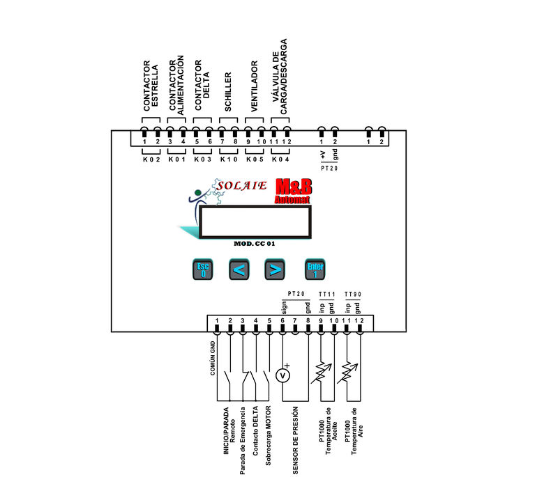 El módulo está diseñado para reemplazar a los Sistemas de Control de los compresores de tornillo, que como en el caso de los Atlas Copco se controla: